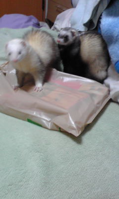 月曜日夜帰ってきて、フェレットにおやつあげたんですよ。
